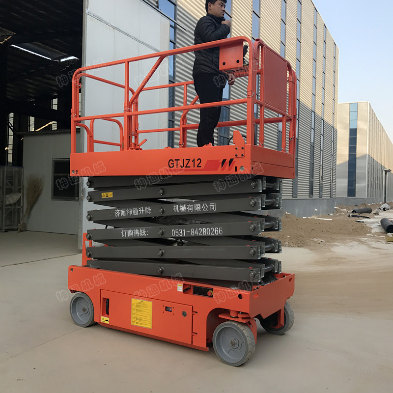 產(chǎn)品說明:自行式電動(dòng)升降機(jī)具有自行走功能,能夠在工作狀態(tài)下,不需外接電源,不需動(dòng)力牽引,可自由行走、后退、轉(zhuǎn)彎。